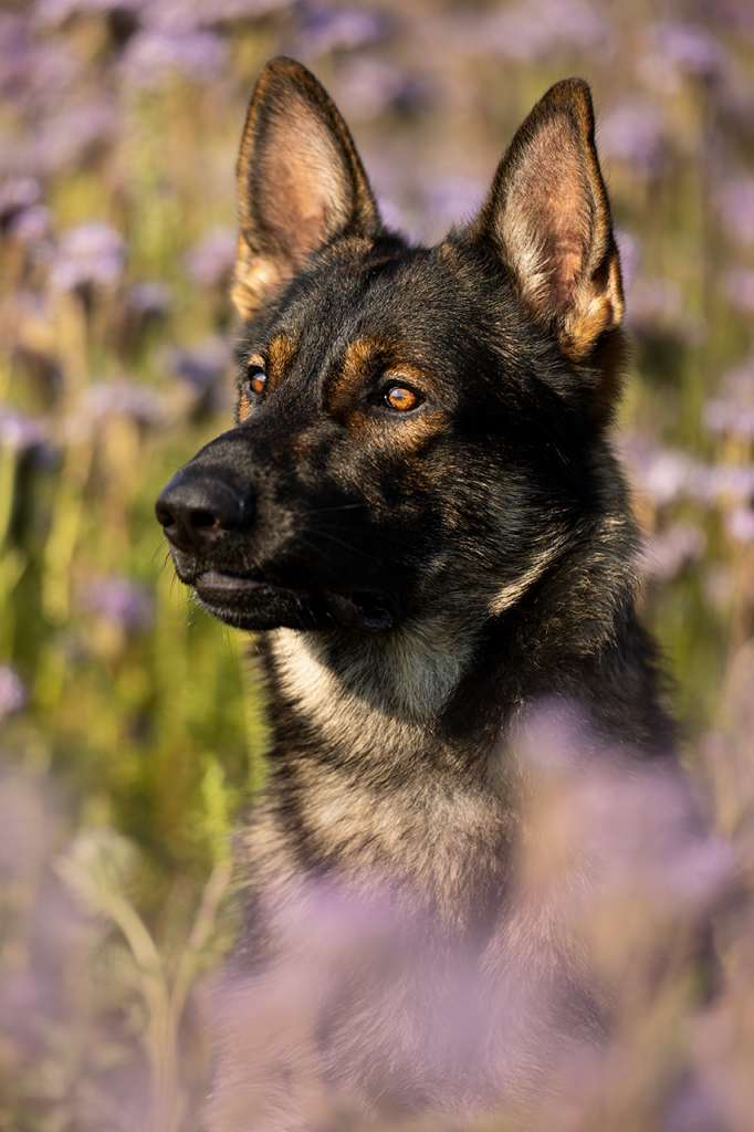 Pan ist ein beeindruckender Schäferhund mit klarem Verstand und außergewöhnlicher Präsenz. Seine Intelligenz zeigt sich nicht nur im täglichen Miteinander, sondern besonders in seiner Arbeitsweise: strukturiert, konzentriert und voller Motivation. Im Umgang mit anderen Hunden agiert er souverän, kompetent und ausgesprochen freundlich – seine gelassene Art macht ihn zu einem geschätzten Sozialpartner. Ob beim Mantrailen oder in der Objektsuche, Pan geht mit Präzision und Begeisterung ans Werk und zeigt dabei eine bemerkenswerte Ausdauer. Als sportbegeisterter Hund liebt er körperliche Herausforderungen wie Canicross und Bikejöring, in denen er seine Kraft und Schnelligkeit voll ausleben kann. Trotz seiner Leidenschaft für Aktivität hat Pan auch die Kunst der Ruhe gemeistert – er weiß, wann Energie gefragt ist und wann Gelassenheit den Ton angibt. In seinem ausgeglichenen Wesen verbinden sich sportlicher Ehrgeiz, freundliche Offenheit und innere Stabilität zu einem ganz besonderen Charakter.